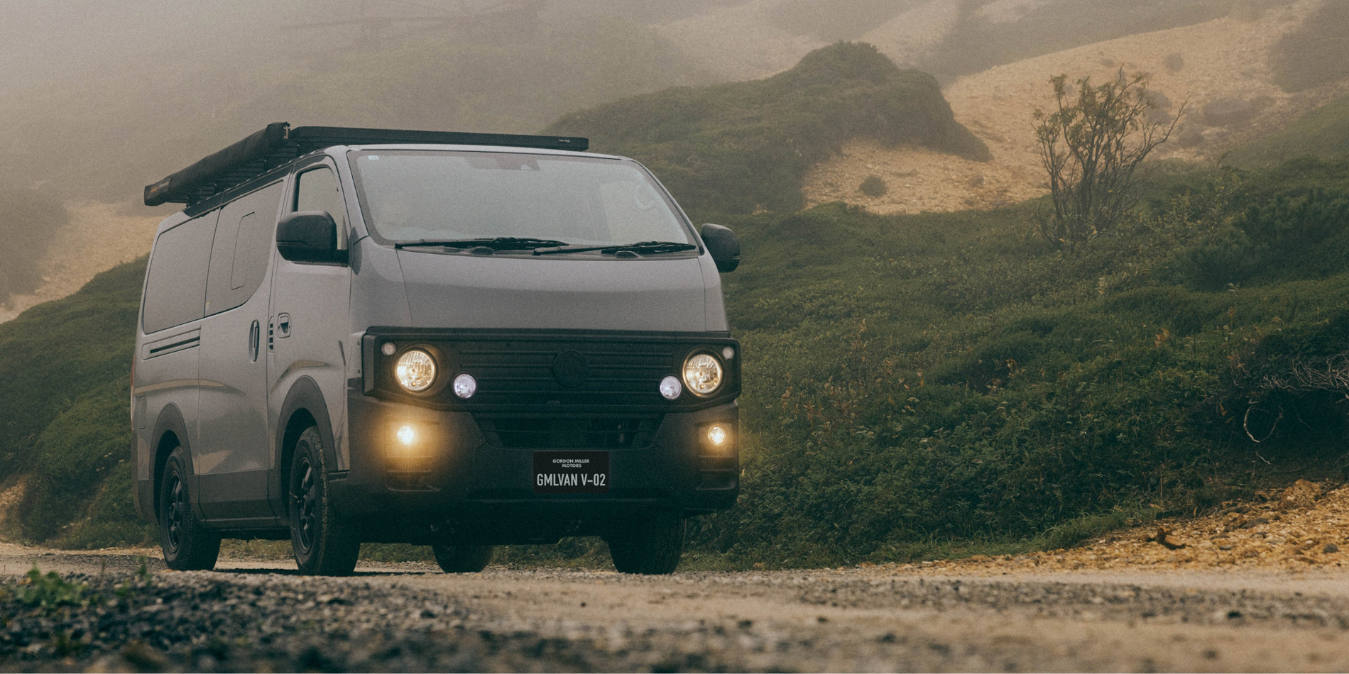 日産キャラバン プレミアムGXをベースに、GORDON MILLERテイストに仕上げた丸目4灯が特徴的なバンライフカー。内装には、天然のアカシア材を使い、テーブルモード、ベッドモードなどフレキシブルに変化するバンライフ仕様。車内AC電源搭載、先進安全など充実の装備。ボディカラーはこれまでホワイトのみであったVシリーズに、ステルスグレーの選択肢が新たに加わりました。
