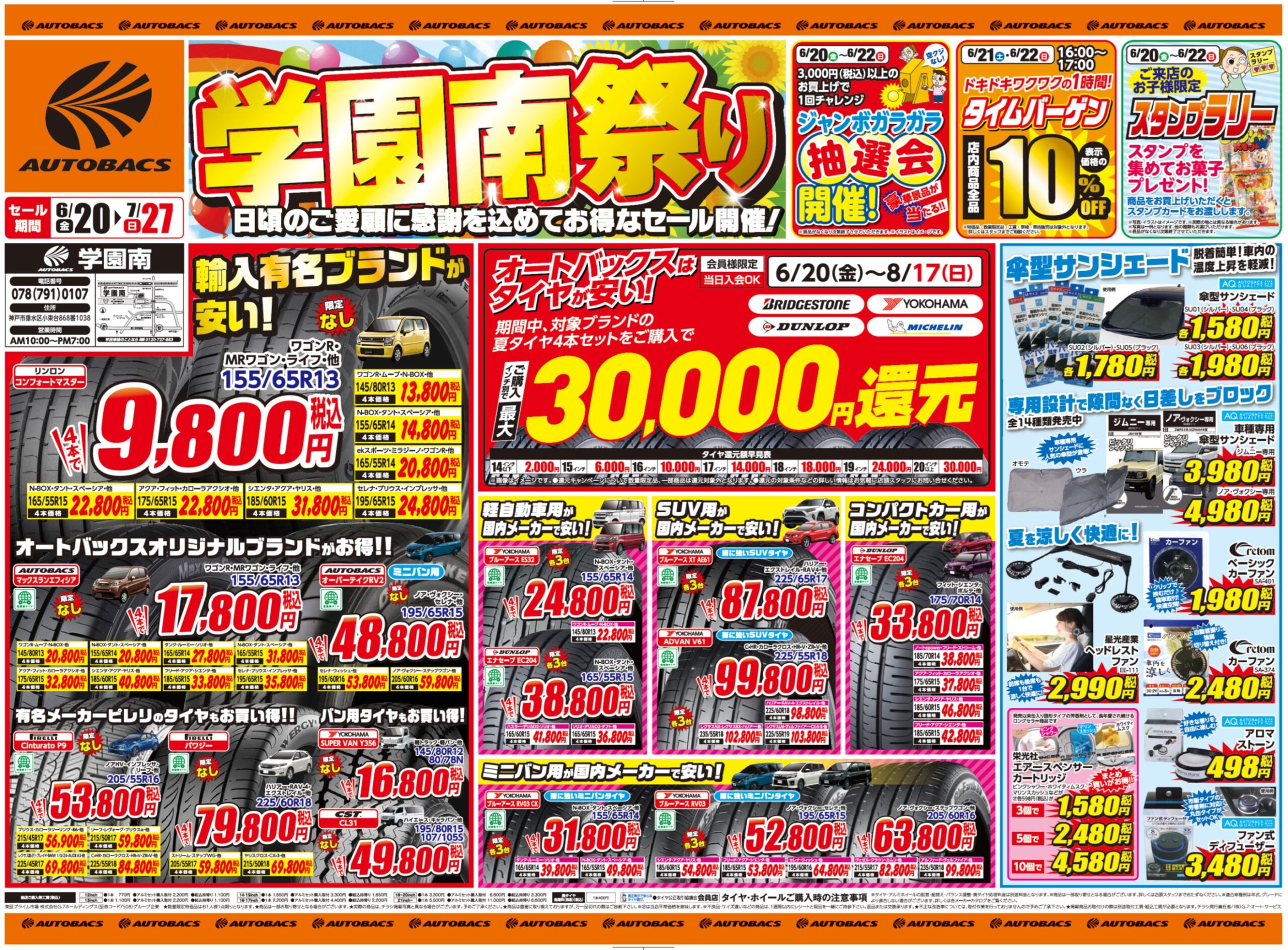 オートバックス学園南 夏祭りセール開催|6/20(金) » 6/22(日)|タイヤがお得!カーナビがお得!ドラレコがお得