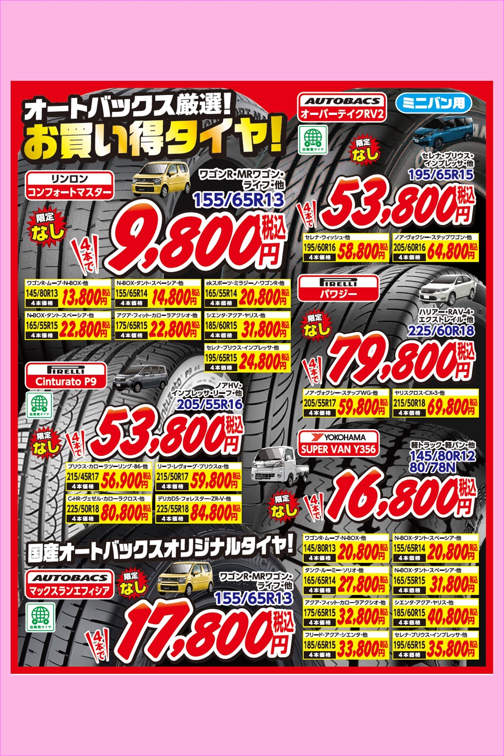 オートバックスグループのおススメ対象のタイヤが期間中4本セットでお買上でお得!