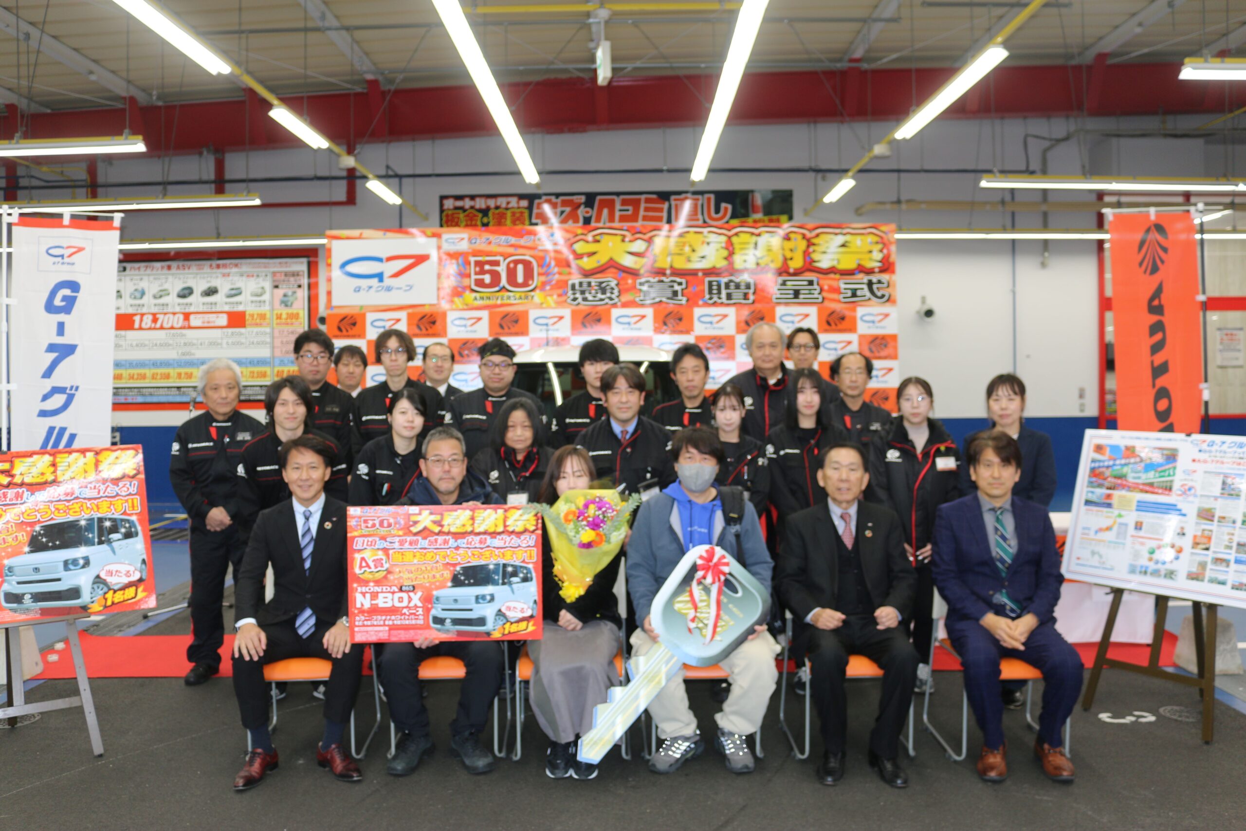 2025.12.16 G-7グループ50周年大感謝祭 懸賞贈呈式 | 12/13 12月13日(土) G-7グループ50周年大感謝祭『懸賞N-BOX贈呈式』を オートバックス三木大村店にて行わせていただきました。 約4万通の応募の中から見事!ご当選されました! 兵庫県三木市在住のG様 本当におめでとうございます☆ 見事ご当選されました三木市在住のG様とオートバックス三木大村店メンバー 一覧へもどる