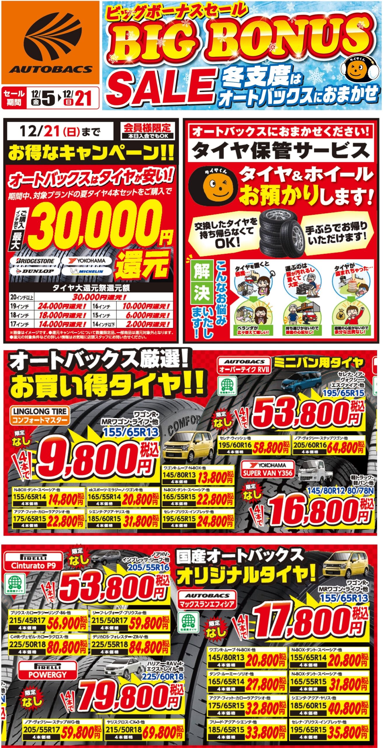 オートバックス ビッグボーナスセール |12/5(金) » 12/21(日)