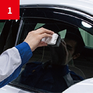 ガラス特有の透明感あるツヤで、他のクルマと差がつきます!「水シミ」の防止にもなるから、一石二鳥!
