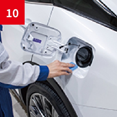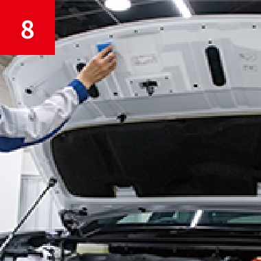 トランク・ボンネットの裏・ドアの隅やヒンジなど、外から見えない塗装がされているあらゆる部分にEXキーパーを施工します。さらに、超撥水ウィンドウコーティング、ホイールコーティング、レンズコーティング、樹脂フェンダーキーパー、除菌・車内清掃が加わった、全キーパーシリーズの中で最もプレミアムなコーティングプランです。