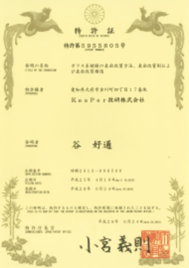 「塗装保護理論」「水垢落とし」の性能によって特許を取得しました